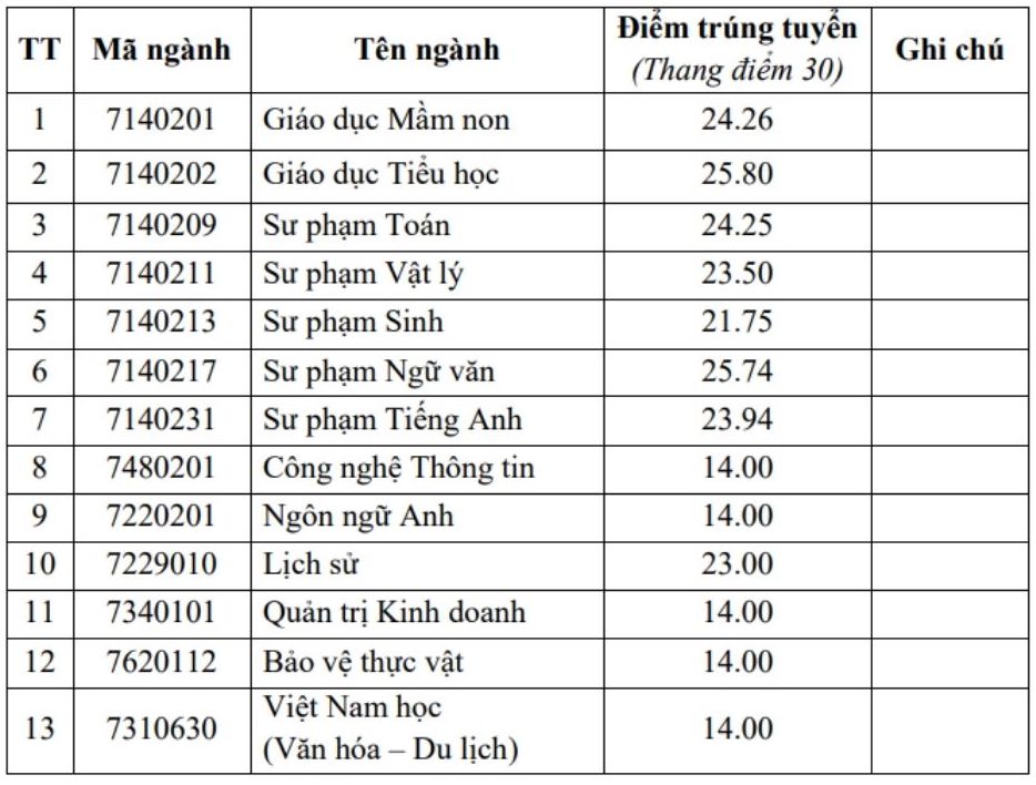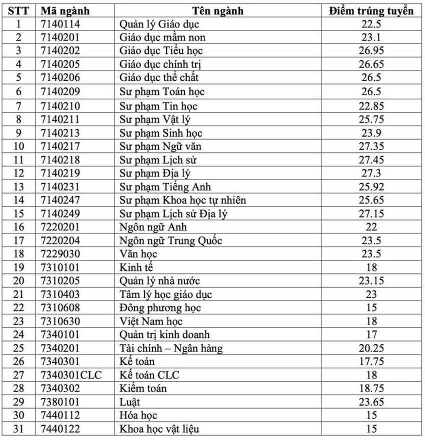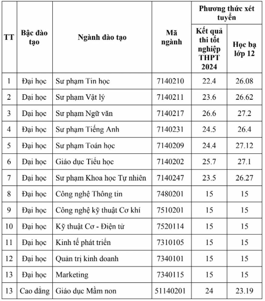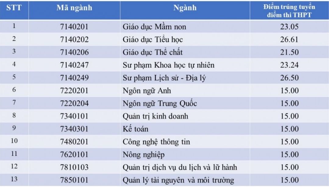 Trong đó, ngành Sư phạm Khoa học tự nhiên có mức điểm chuẩn là 23,24 điểm. Ngành Giáo dục Thể chất lấy 21,5 điểm.