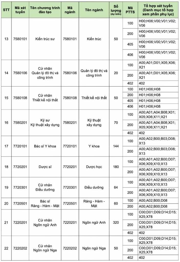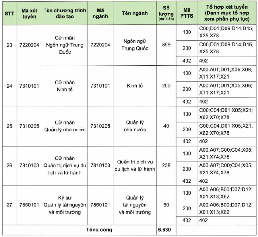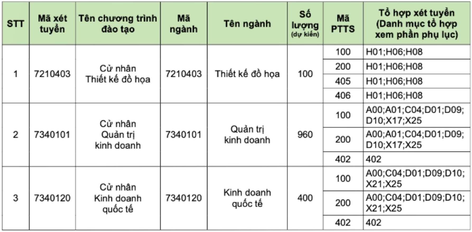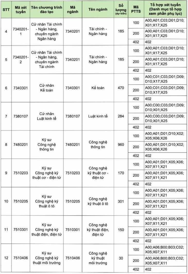 Cụ thể, chỉ tiêu và tổ hợp xét tuyển của từng ngành đào tạo như sau: