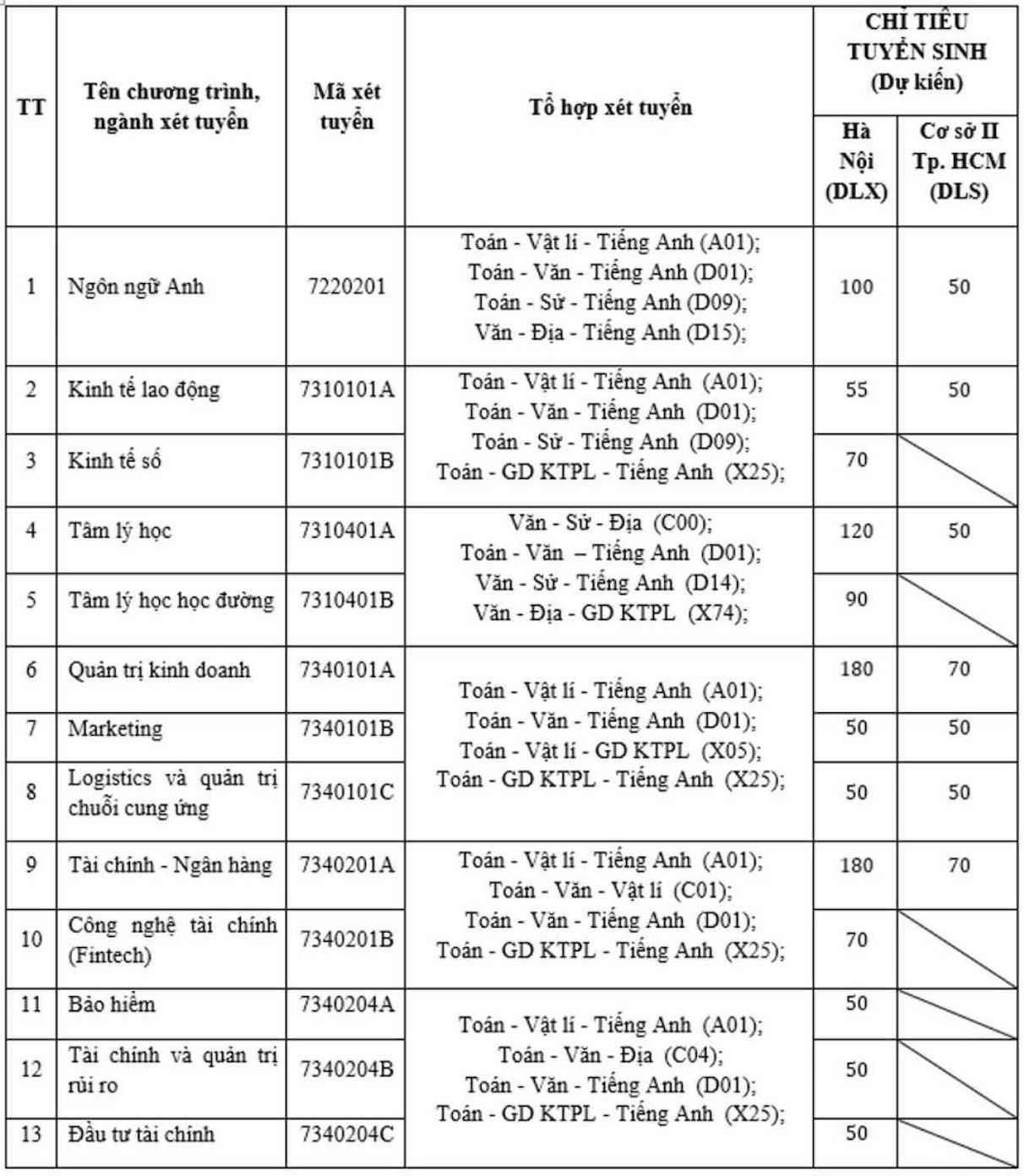 - Xét tuyển từ kết quả thi đánh giá năng lực của Đại học Quốc gia Hà Nội và Đại học Quốc gia TP Hồ Chí Minh;
