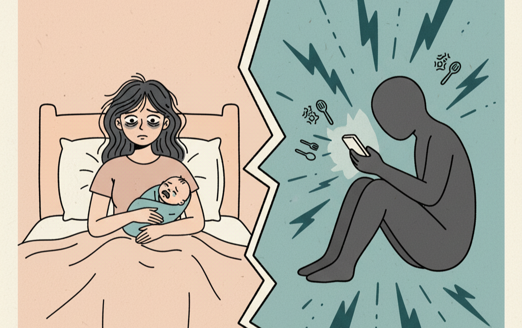 Các bạn cứ thử tưởng tượng, tôi có con nhỏ, buổi sáng vẫn phải dậy chăm sóc con, trong khi tối ngủ không được, còn người thân sáng về là được ngủ bù. Thế nhưng người này có hành động kiểu: đi làm đêm về nhưng không chịu nghỉ ngơi luôn, làm gì cũng ầm ĩ. Đã 2-3h sáng mà vừa ăn vừa xem tivi hoặc chơi game, ăn xong không chịu đi lên phòng liền mà còn ngồi coi tivi hoặc chơi game cả chập (theo như người đó nói là để tiêu cơm). Phòng tôi ở dưới nhà, lại không kín nên mọi hành động khua chén, kéo ghế, xem tivi của người thân, tôi đều bị ảnh hưởng vì trong đêm mọi thứ rất vang.