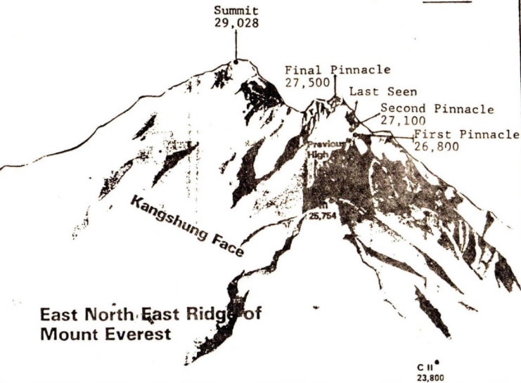 Sau khoảng 5 ngày không có dấu hiệu, Bonington hiểu hai đồng đội đã gặp nạn, khả năng cao bị rơi xuống khu vực "Bức tường Kangshung" - mặt đông Everest. Đây là vách núi khổng lồ, dựng đứng, cao 3.350 m tính từ đáy sông băng Kangshung Glacier (khoảng 5.200 m) lên đến đỉnh Everest (8.848 m).