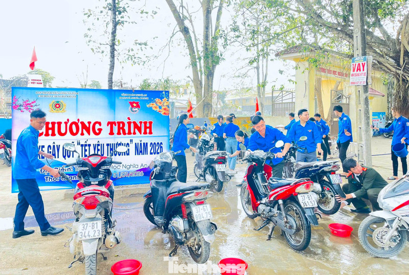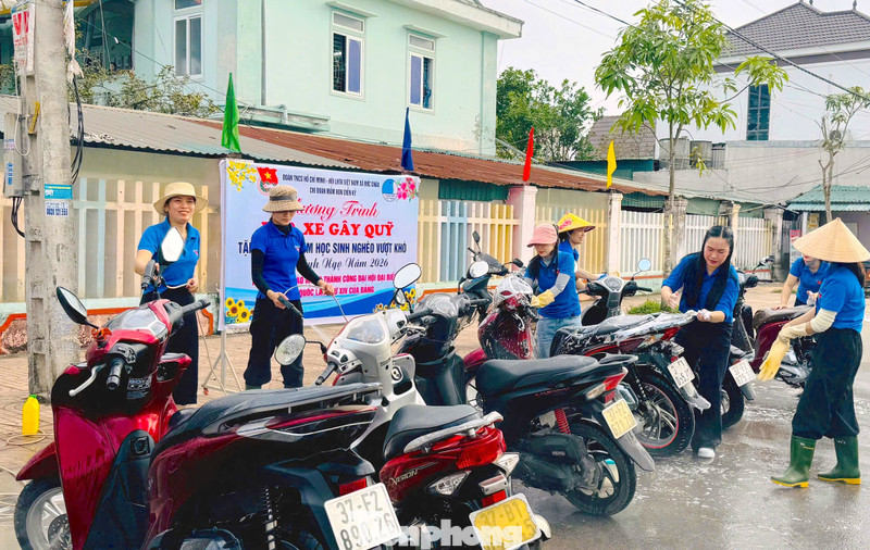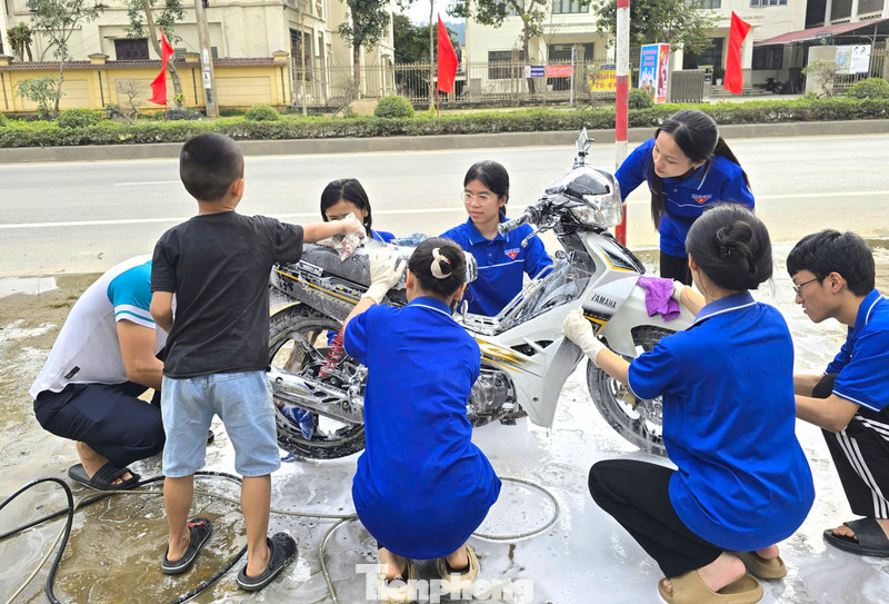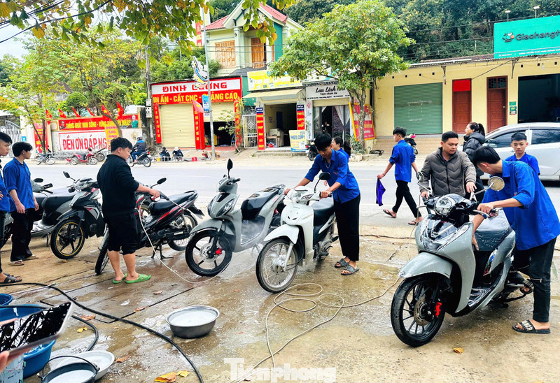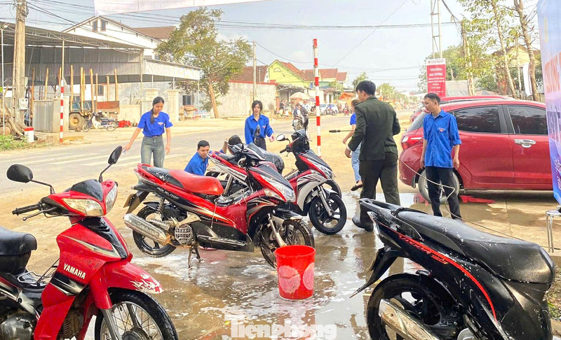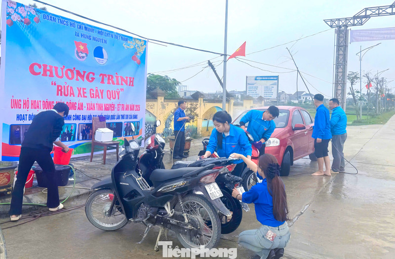 Hoạt động rửa xe từ thiện của các đoàn viên thanh niên gây quỹ hỗ trợ các hoàn cảnh khó khăn dịp Tết, lan tỏa tinh thần sẻ chia, trách nhiệm vì cộng đồng.