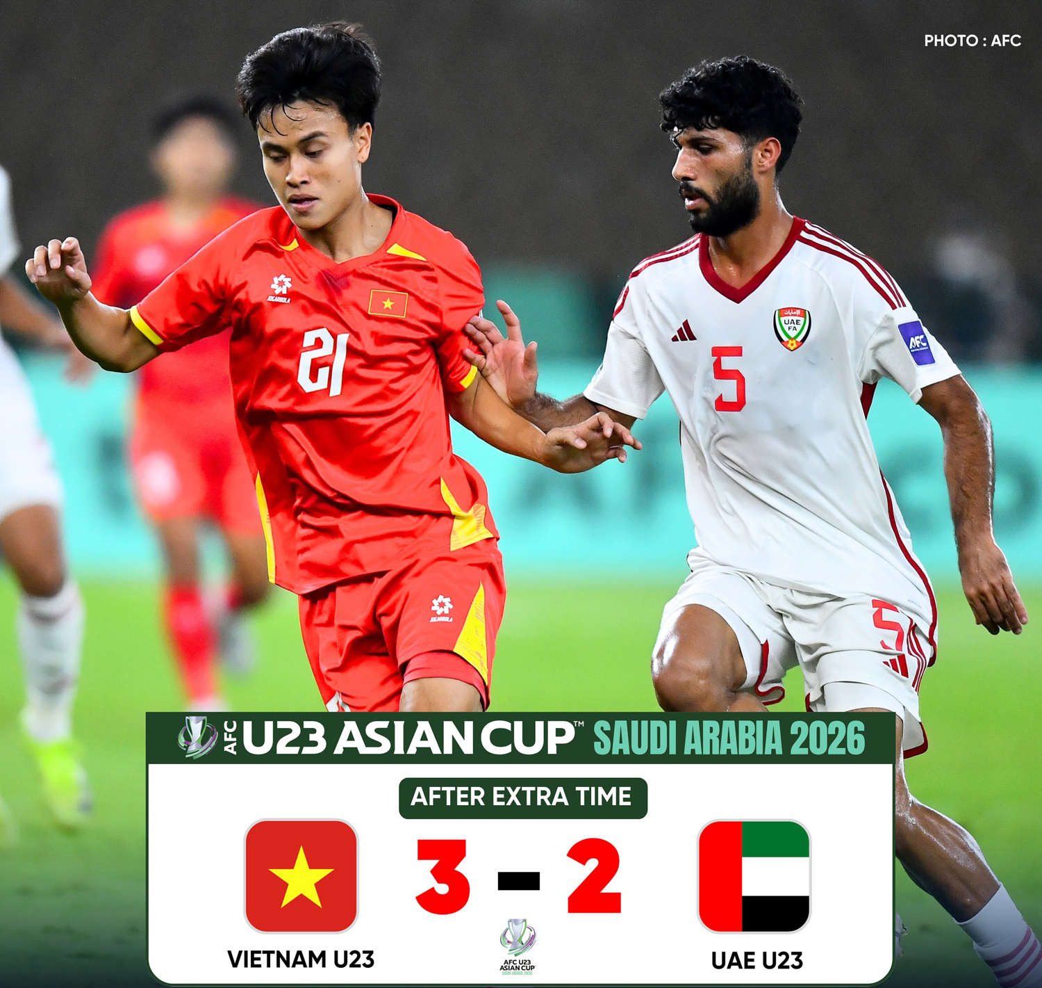 Việt Nam thắng 3-2 sau hai hiệp phụ, qua đó giành vé vào bán kết U23 châu Á 2026.