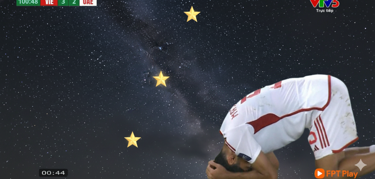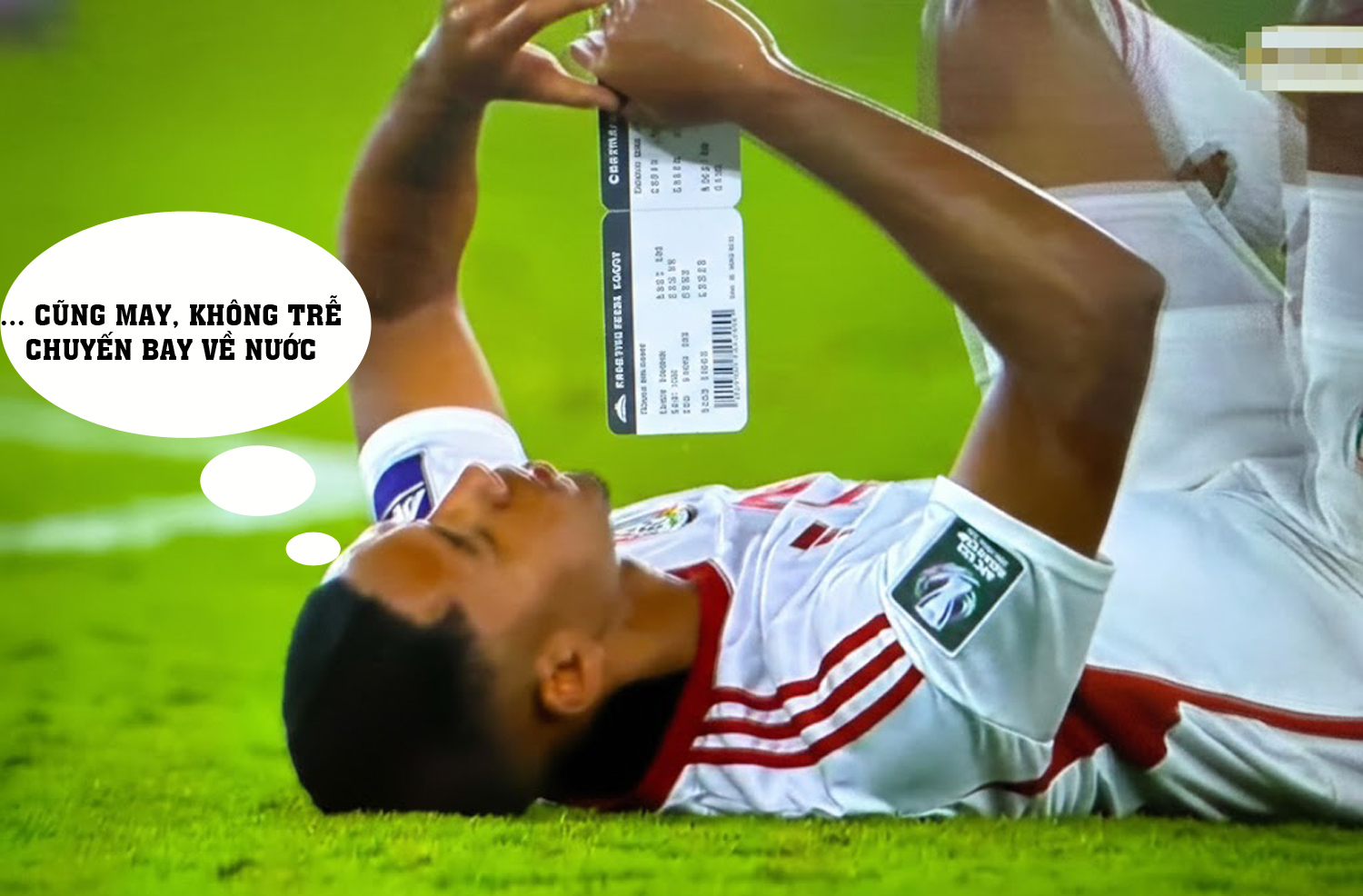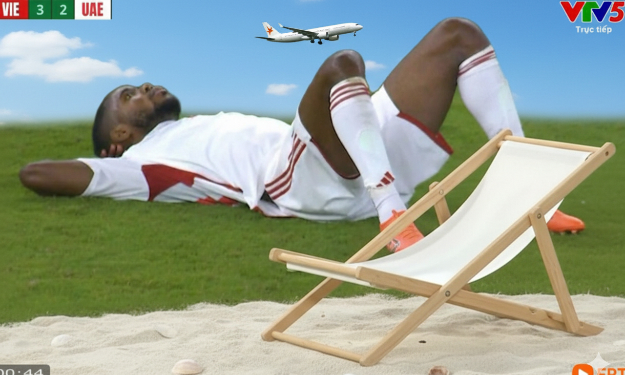 Hình ảnh một cầu thủ U23 UAE gối tay lên đầu nằm như đang thư giãn sau trận thua U23 Việt Nam nhanh chóng lan truyền khắp MXH.