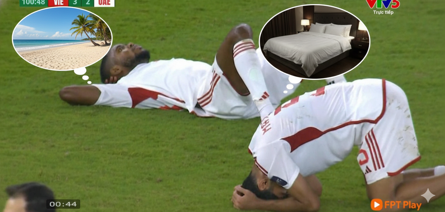 Khoảnh khắc cầu thủ U23 UAE gối tay lên đầu nằm như đang thư giãn sau trận thua U23 Việt Nam đã 'gây bão' mạng xã hội.
