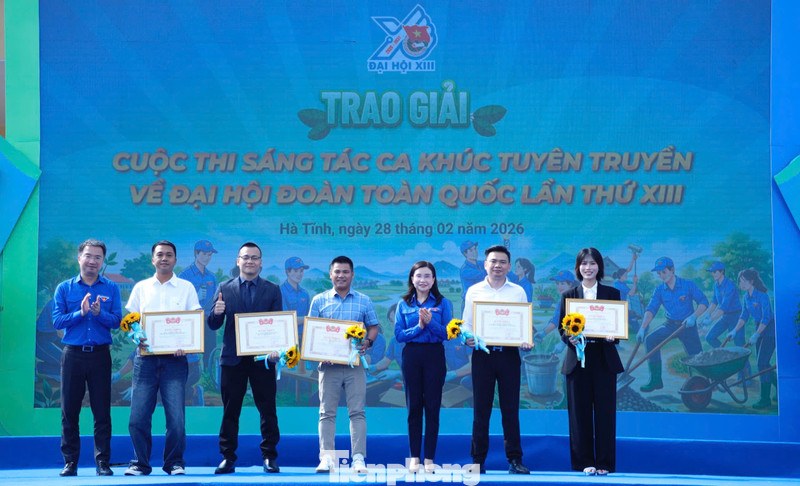 Sáng 28/2, trong khuôn khổ Lễ khởi động Tháng Thanh niên 2026 và phát động Tết trồng cây “Đời đời nhớ ơn Bác Hồ” Xuân Bính Ngọ, BTC đã trao giải Cuộc thi sáng tác ca khúc tuyên truyền về Đại hội đại biểu toàn quốc Đoàn TNCS Hồ Chí Minh lần thứ XIII, nhiệm kỳ 2026 – 2031 và công bố ca khúc chính thức của Đại hội.