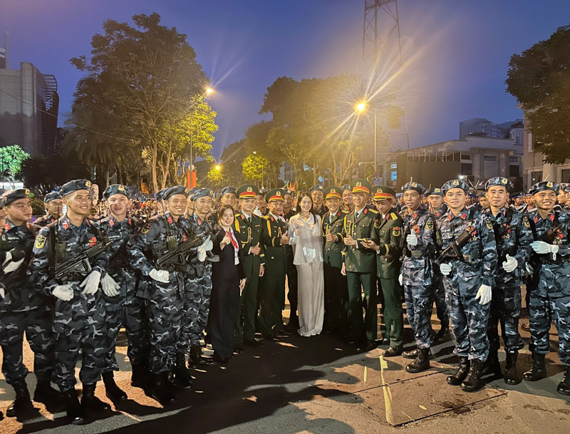 Trong khi đó, Hoa hậu Liên lục địa 2022 Lê Nguyễn Bảo Ngọc bày tỏ việc được khoác lên mình tà áo dài, đứng giữa hàng ngũ diễu binh trong buổi tổng duyệt kỷ niệm 50 năm Ngày Giải phóng miền Nam, thống nhất đất nước, là niềm tự hào rất đặc biệt. "Đó không chỉ là tự hào về lịch sử, mà còn là sự biết ơn sâu sắc với những thế hệ đã hy sinh để đất nước có được ngày hôm nay," Bảo Ngọc xúc động nói.