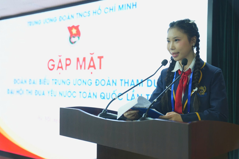 Chia sẻ tại buổi gặp, em Đỗ Trà My - học sinh lớp 7A18, Trường THCS Nghĩa Tân (TP Hà Nội) bày tỏ niềm vui, niềm tự hào và một trách nhiệm lớn lao khi trở thành đại biểu tham dự Đại hội.