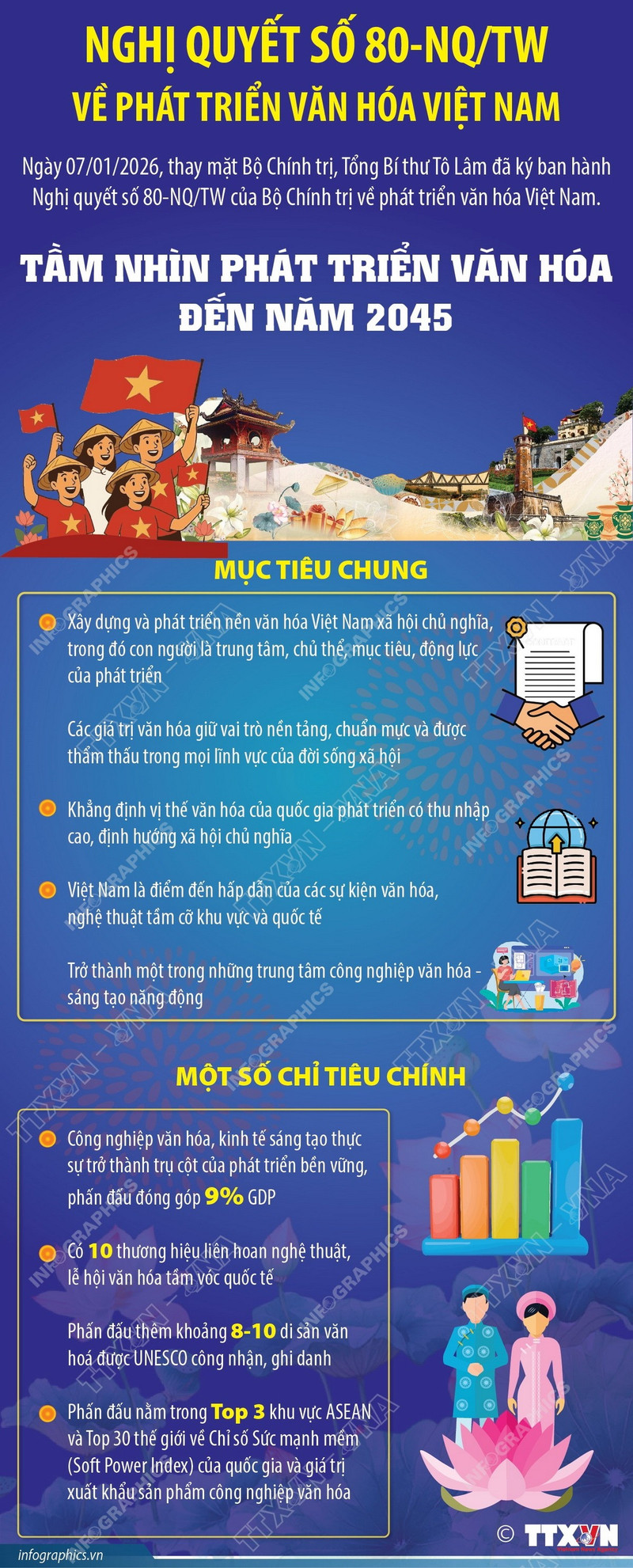 Ngày 7/1/2026, thay mặt Bộ Chính trị, Tổng Bí thư Tô Lâm đã ký ban hành Nghị quyết số 80-NQ/TW của Bộ Chính trị về phát triển văn hóa Việt Nam.