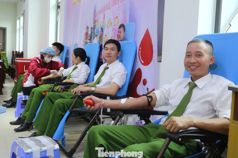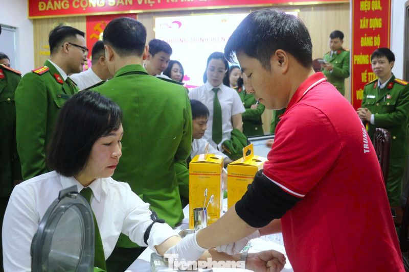 Cán bộ, chiến sĩ Phòng Cảnh sát Quản lý hành chính về trật tự xã hội (Công an Nghệ An) tham gia hiến máu.