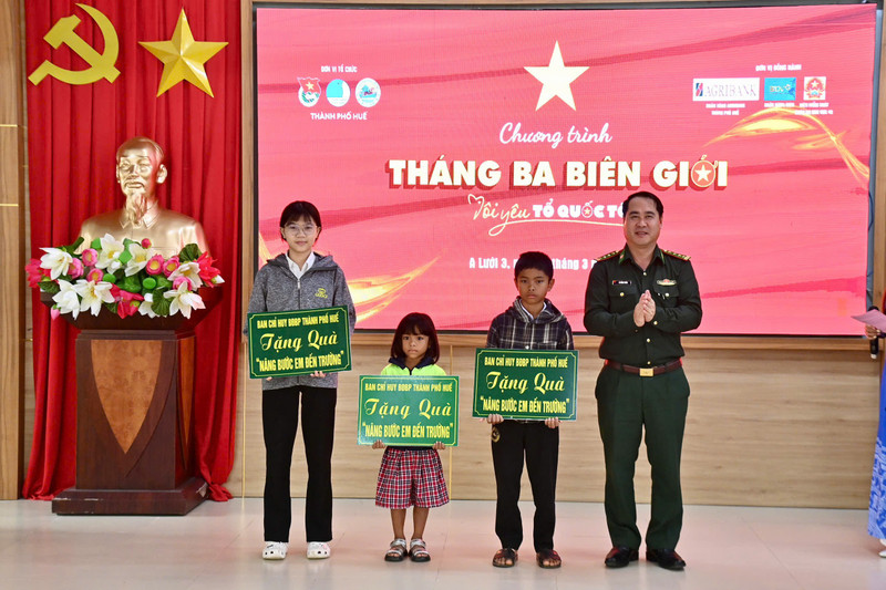 Hướng về vùng cao A Lưới (TP. Huế), chương trình Tháng Ba biên giới triển khai nhiều công trình dân sinh, trao quà và học bổng, góp phần cải thiện đời sống người dân, lan tỏa tinh thần trách nhiệm bảo vệ chủ quyền biên giới.