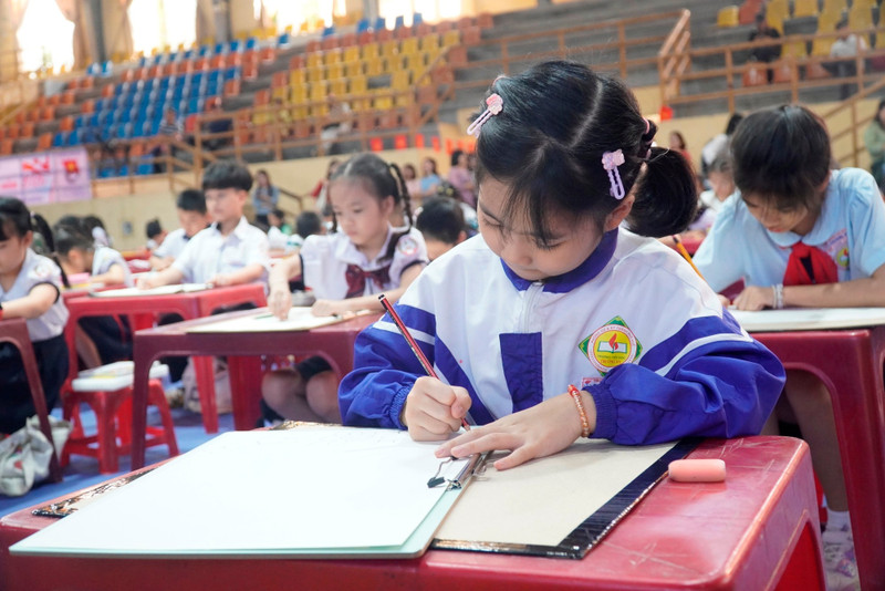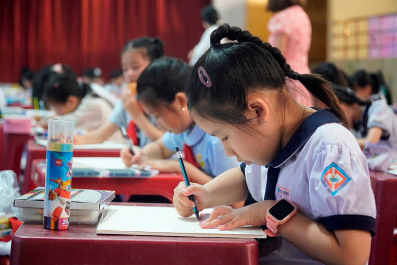 Các thí sinh nhỏ tuổi thi vẽ tranh thuộc các bảng đấu dành cho học sinh tiểu học.