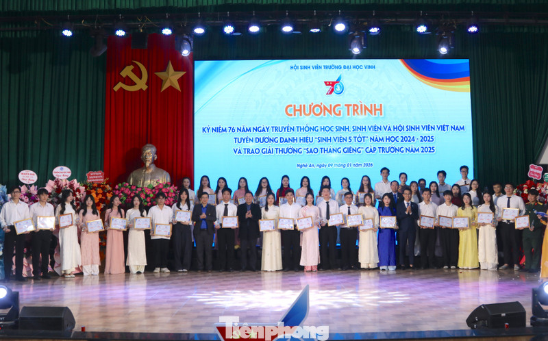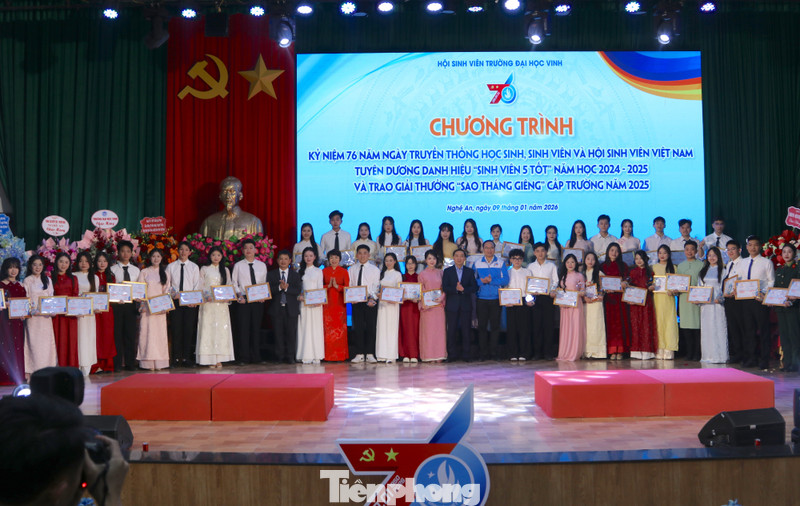 Ban Thư ký Hội Sinh viên Trường Đại học Vinh (Nghệ An) đã tổ chức Lễ kỷ niệm 76 năm Ngày truyền thống học sinh, sinh viên và Hội Sinh viên Việt Nam (9/1/1950 - 9/1/2026); tuyên dương danh hiệu “Sinh viên 5 tốt” năm học 2024 - 2025 và trao Giải thưởng Sao Tháng Giêng năm 2025.