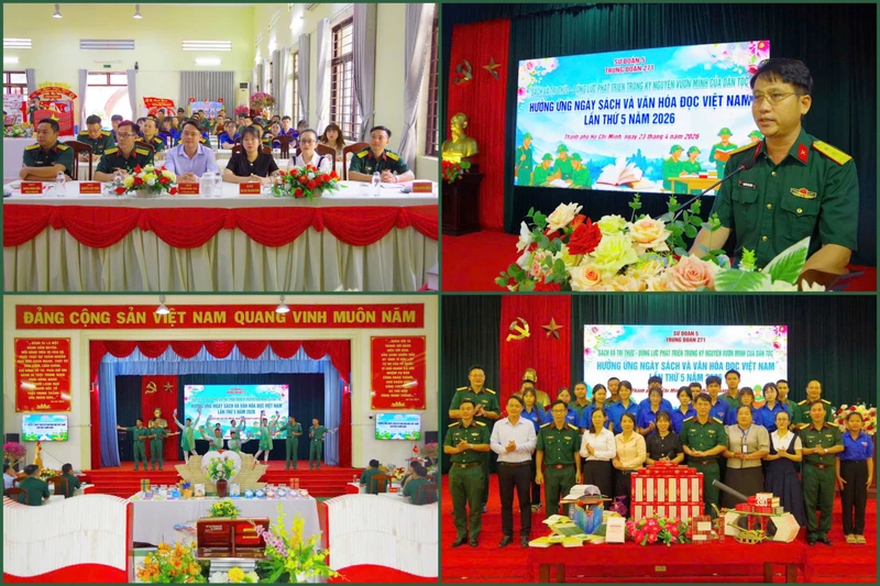 Ngày 23/4, Trung đoàn 271 (Sư đoàn 5, Quân khu 7) phối hợp với Thư viện TPHCM, Trường THPT Phước Vĩnh và Thư viện xã Phú Giáo (TPHCM) tổ chức các hoạt động hưởng ứng Ngày Sách và Văn hóa đọc lần thứ 5 năm 2026, với chủ đề “Sách và tri thức - động lực phát triển trong kỷ nguyên vươn mình của dân tộc”.