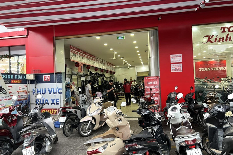 Hệ thống cửa hàng xe máy Toàn Trung ở phía đông Gia Lai thông báo miễn phí công sửa xe máy bị ngập nước, ngay lập tức thu hút hàng trăm lượt người dân tìm đến. Trước cửa hàng, từng hàng dài xe máy bám đầy bùn đất xếp kín lối vào.