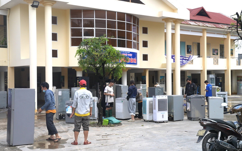 Những ngày sau lũ, khuôn viên Trường Cao đẳng Kỹ thuật Công nghệ Quy Nhơn nhộn nhịp hơn hẳn. Đây là điểm tiếp nhận của chương trình sửa chữa điện lạnh – thiết bị gia dụng miễn phí do đoàn viên thanh niên của trường phối hợp Hội điện lạnh Bình Định triển khai từ ngày 23/11.
