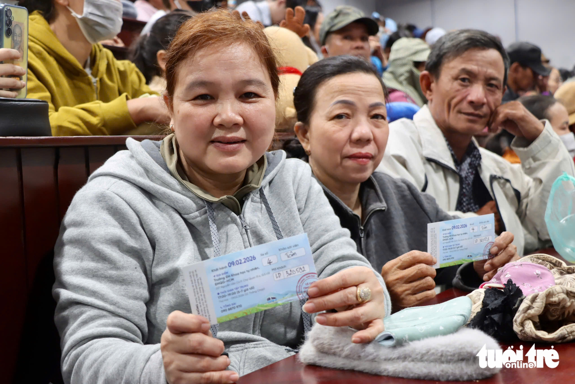 Ba mẹ con chị được hỗ trợ về quê trên Chuyến xe số 7+ vừa lăn bánh khuya 9-2 tại Trường đại học Khoa học Tự nhiên (Đại học Quốc gia TP.HCM), do nhóm bạn trẻ TP.HCM thuộc Tổ chức thiện nguyện VNO phối hợp cùng các đơn vị thực hiện.