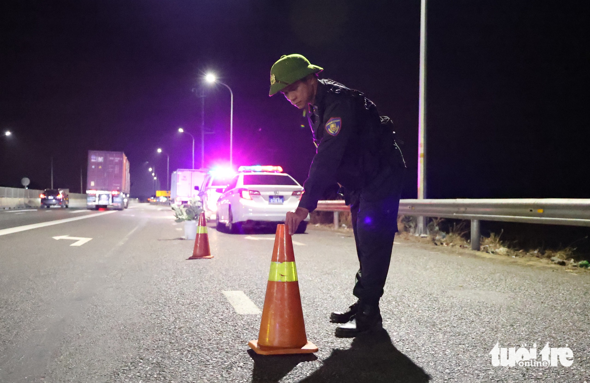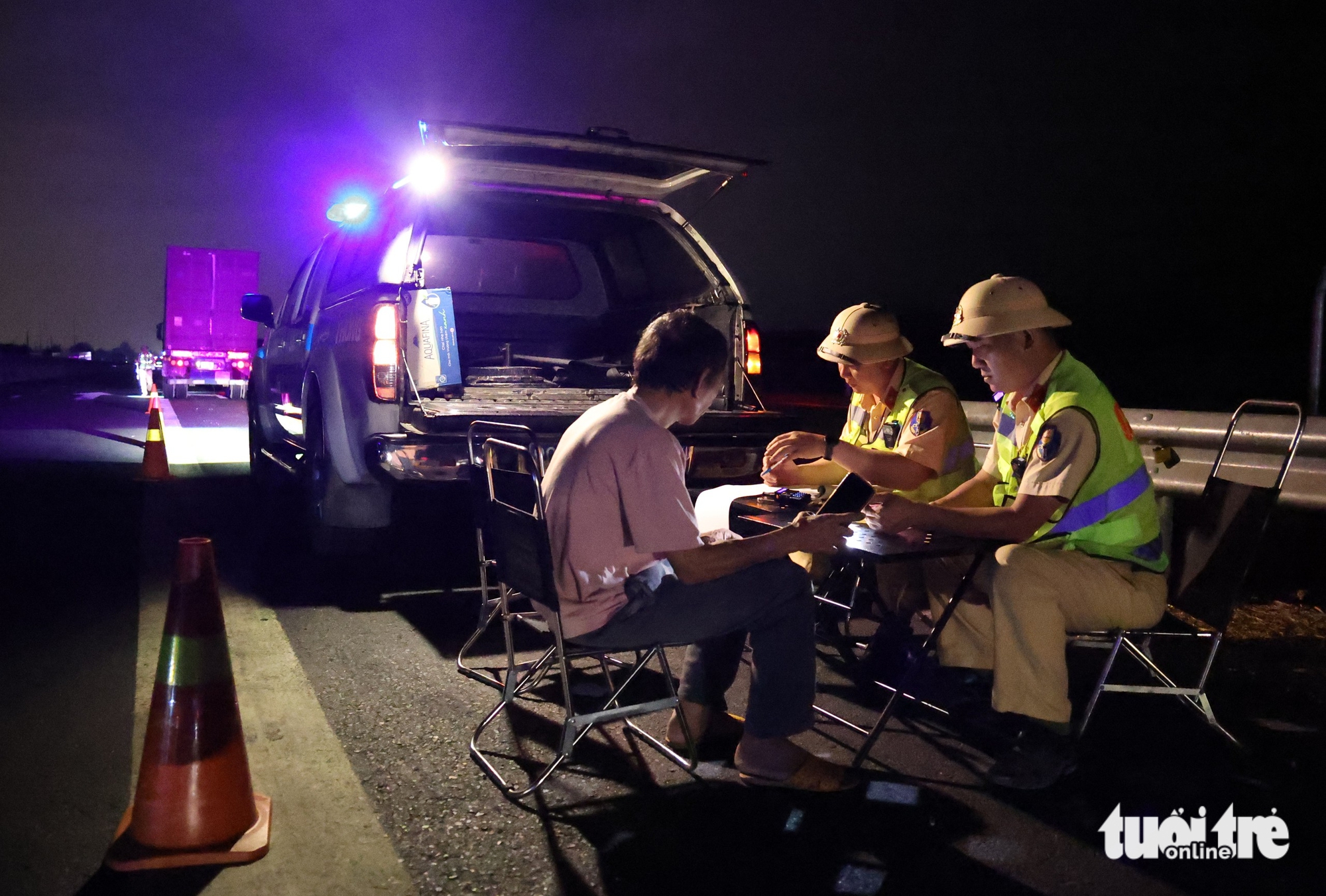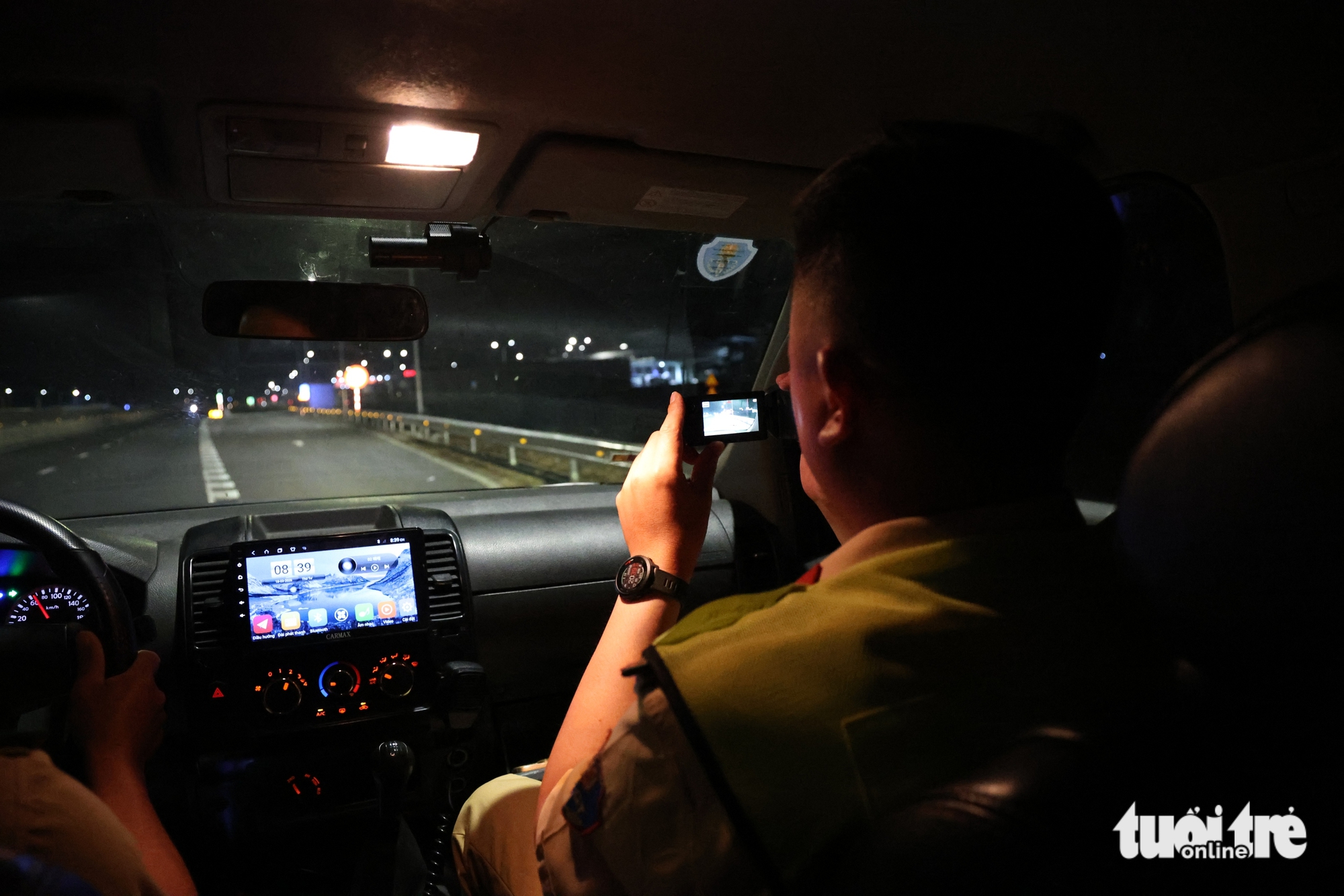 Dần về nửa đêm, lưu lượng xe trên cao tốc giảm nhưng cũng là thời điểm nhiều tài xế buồn ngủ, mất tập trung, tổ công tác vẫn duy trì tuần tra. "Có khi chạy hàng trăm cây số không có gì. Nhưng chỉ cần có một tình huống là phải xử lý ngay", đại úy Sơn nói.