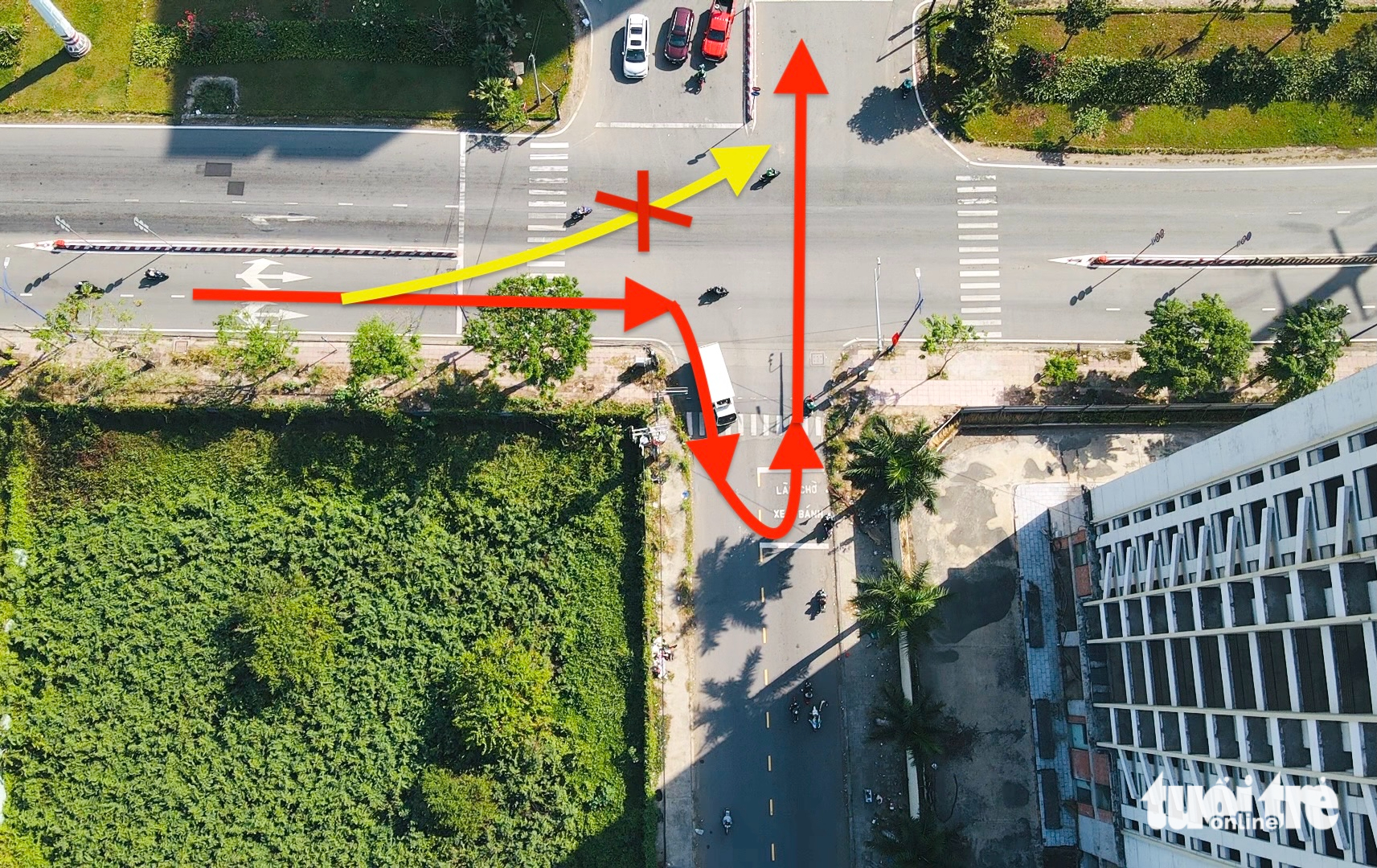 Cơ quan chức năng đã tổ chức giao thông lại và có hướng dẫn như sau. Khi đến các giao lộ với đường Đồng Văn Cống, người dân cần qua đường quay đầu thì rẽ phải vào đường nhánh (hoặc điểm chờ)