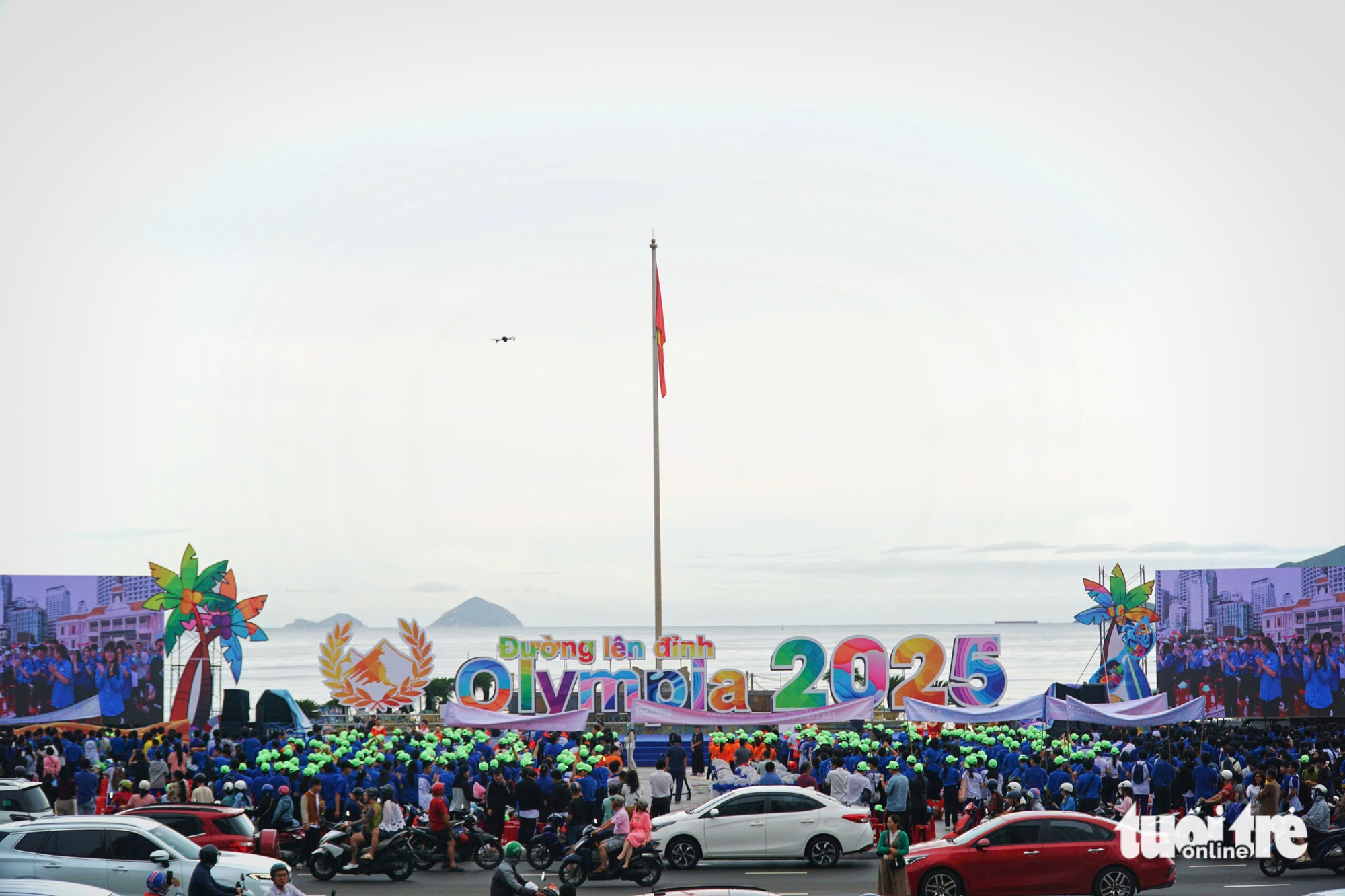 Ngày 25-10, khu vực quảng trường 2 Tháng 4 sôi động khi hàng ngàn học sinh, người dân và du khách cùng đến xem buổi tổng duyệt tại điểm cầu truyền hình chung kết Đường lên đỉnh Olympia 2025, cổ vũ cho thí sinh Đoàn Thanh Tùng (Trường THPT chuyên Lê Quý Đôn, Khánh Hòa).