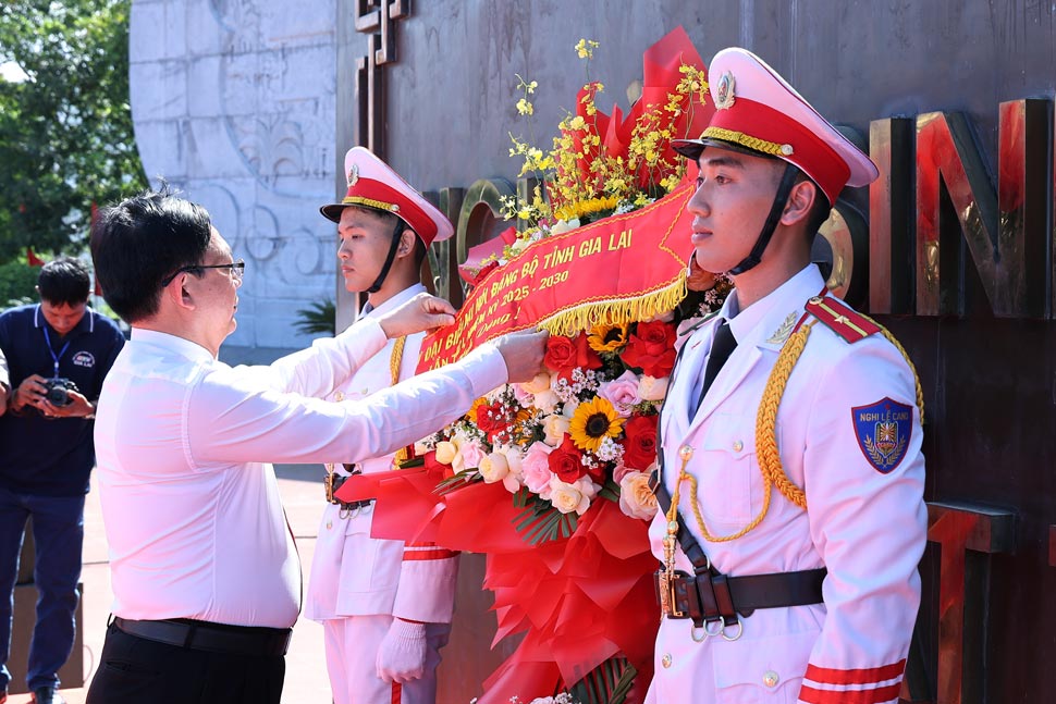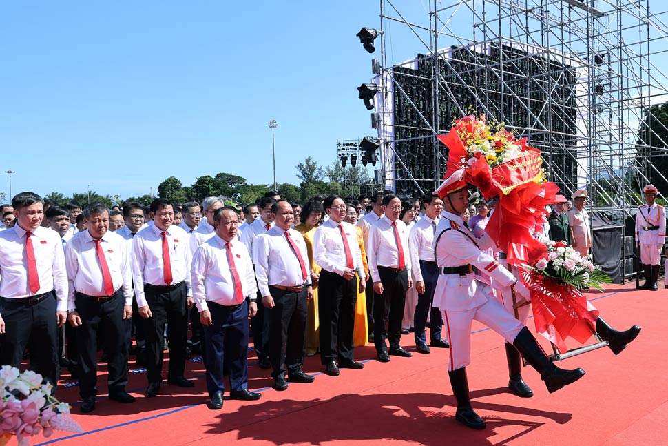 Trước khi diễn ra phiên trù bị, các đại biểu đã dâng hoa tại Tượng đài Nguyễn Sinh Sắc - Nguyễn Tất Thành (phường Quy Nhơn).