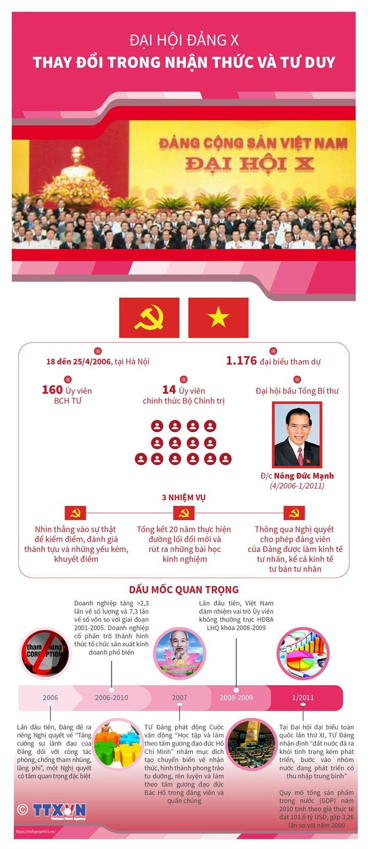 Đại hội đại biểu toàn quốc lần thứ X của Đảng họp từ ngày 18 đến 25/4/2006, tại Hà Nội. Dự Đại hội có 1.176 đại biểu thay mặt cho hơn 3,1 triệu đảng viên trong toàn Đảng.