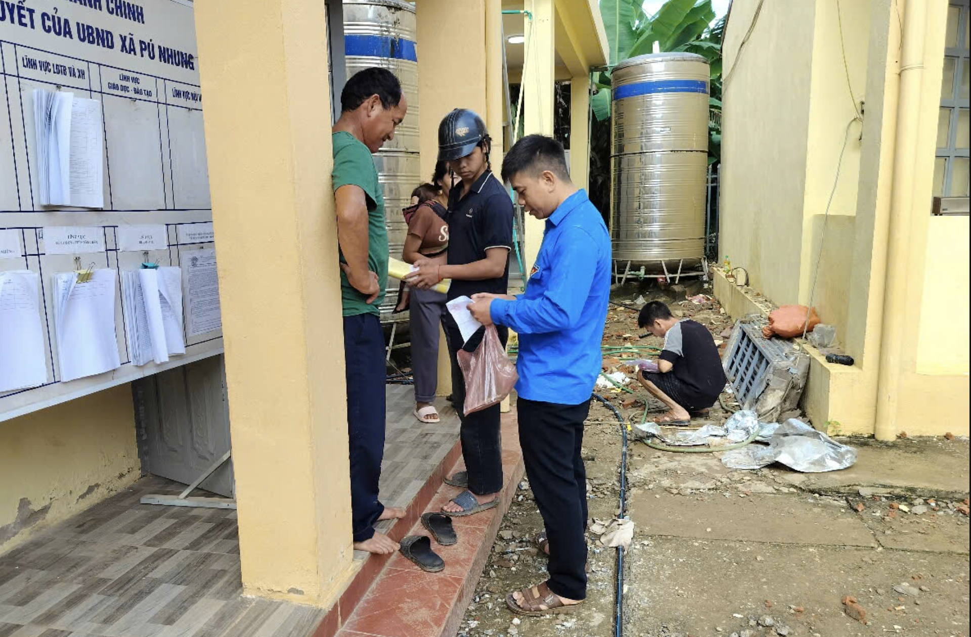 | Ngay từ sáng sớm, các đội hình tình nguyện của xã Pú Nhung đã có mặt, chuẩn bị thiết bị, tài liệu hướng dẫn để sẵn sàng đồng hành cùng người dân. |
