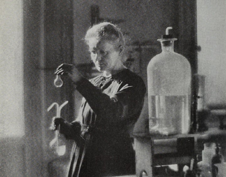 Nhà vật lý và hóa học người Pháp gốc Ba Lan tiên phong trong nghiên cứu về hiện tượng phóng xạ. Một trong những thành tựu nổi bật nhất của bà là phát minh máy chụp X-quang di động được sử dụng rộng rãi trong Thế chiến thứ nhất. Marie Curie và chồng - Pierre Curie - cùng khám phá ra hai nguyên tố phóng xạ polonium và radium, đồng thời phát triển phương pháp tách chiết đồng vị phóng xạ.
