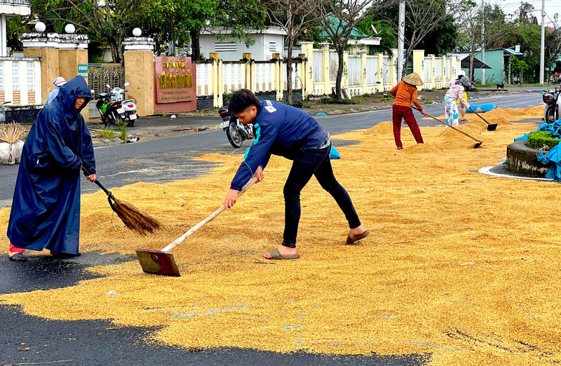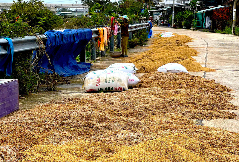 Thóc mọc mầm người dân phơi để cho gia súc, gia cầm ăn.