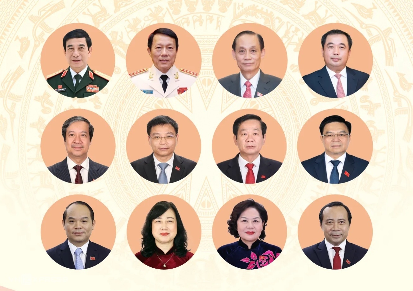 Quân đội còn có hai đại tướng khác được giới thiệu gồm ông Nguyễn Trọng Nghĩa, Chủ nhiệm Tổng cục Chính trị Quân đội nhân dân Việt Nam; ông Nguyễn Tân Cương, Tổng tham mưu trưởng, Thứ trưởng Quốc phòng.