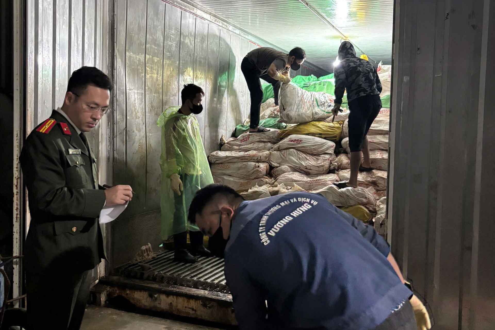 Hà Nội - Lực lượng chức năng phát hiện 59 tấn lòng lợn không rõ nguồn gốc được cấp đông trong 3 container suốt nhiều tháng.