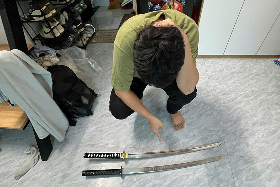 Qua đấu tranh, N.M.Q khai nhận, 2 thanh kiếm trong clip đang được cất giấu tại ngõ 401/72 đường Xuân Đỉnh, phường Xuân Đỉnh, Hà Nội.