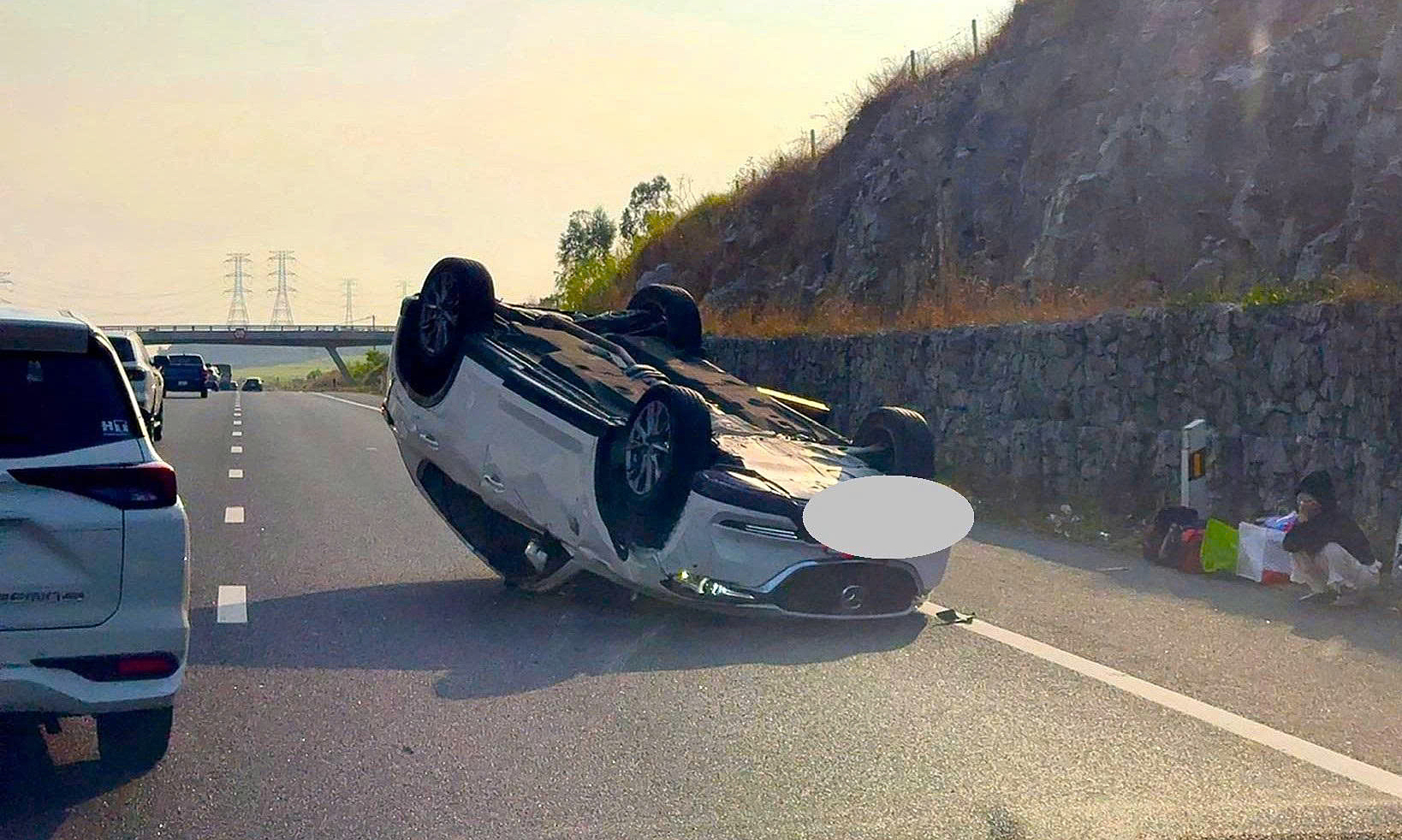 Khoảng 8h hôm nay, ôtô 4 chỗ chạy trên cao tốc Dầu Giây – Phan Thiết, hướng TP HCM đi Nha Trang, bị lật ngửa khi đến địa phận xã Tân Minh, Lâm Đồng, nằm giữa đường.