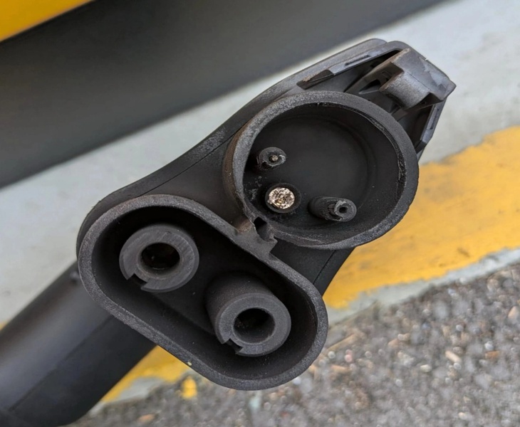 Một tài xế Tesla đang cố gắng sạc xe tại một trạm sạc thương mại không phải của Tesla ở thành phố Hope, British Columbia (Canada). Để làm được điều này, anh ta đã sử dụng bộ chuyển A2Z giúp cổng sạc của trạm tương thích với ổ cắm trên xe điện Tesla.