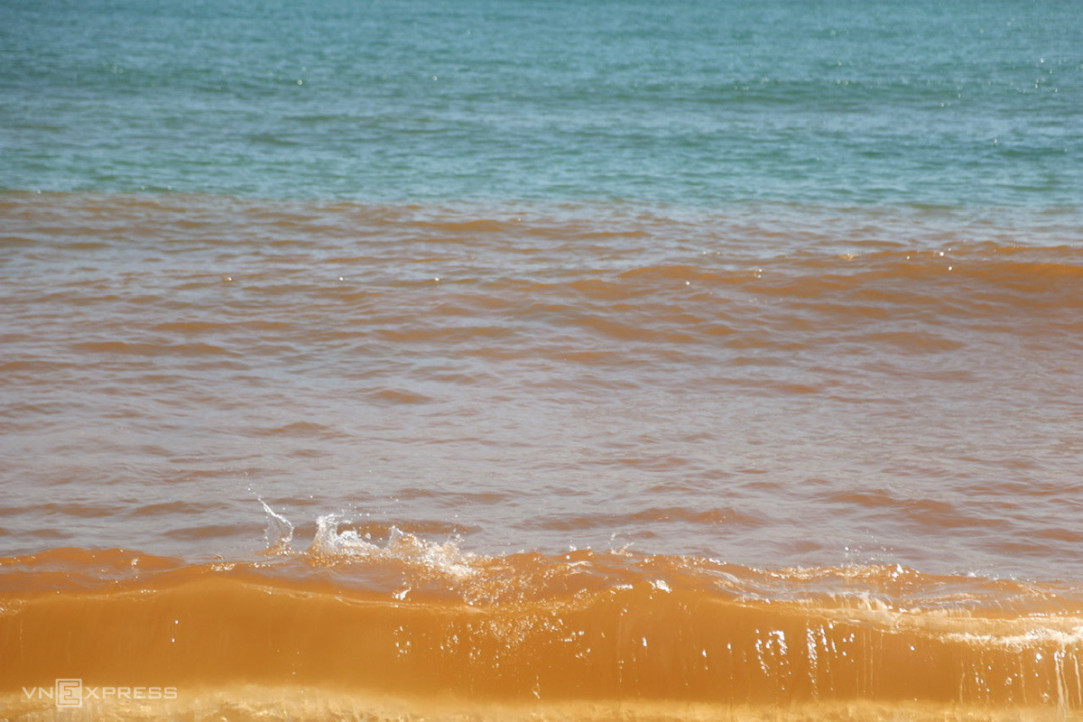 Hơn một km bờ biển Tam Quan, phường Hoài Nhơn Bắc có dải nước màu nâu đỏ rộng khoảng 20-30 m, thu hút sự quan tâm của nhiều người.