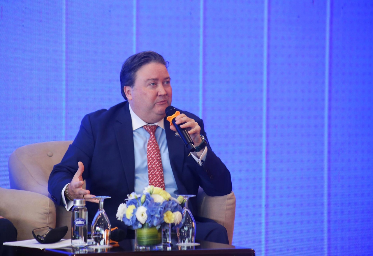 | Đại sứ Mỹ tại Việt Nam Marc E. Knapper nhấn mạnh tầm quan trọng của việc bảo vệ phụ nữ và trẻ em, các nhóm dễ bị tổn thương trên không gian mạng. (Ảnh: Thành Long) |