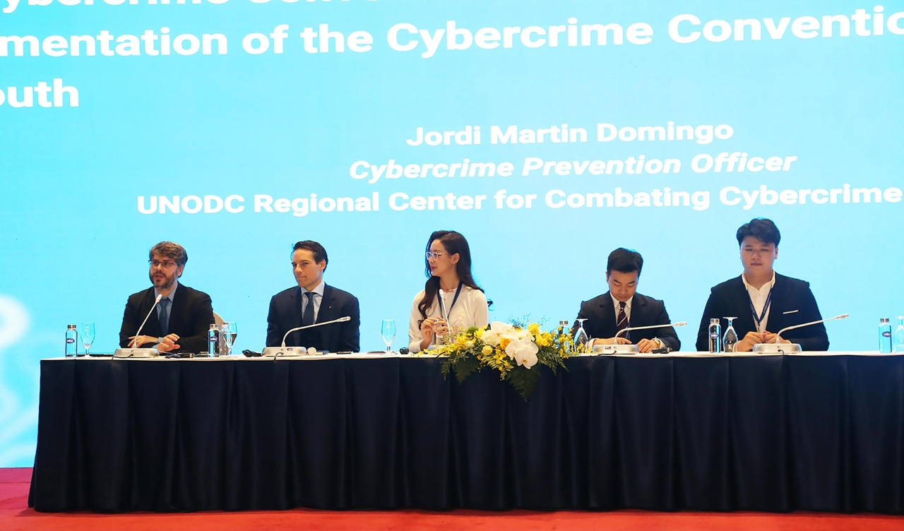 | Tọa đàm chính sách do Bộ Công an phối hợp Văn phòng LHQ về ma túy và tội phạm (UNODC) tổ chức với chủ đề "Thúc đẩy hợp tác quốc tế trong phòng, chống tội phạm mạng: Cách tiếp cận quốc gia khi thực thi Công ước". (Ảnh: Thành Long) |