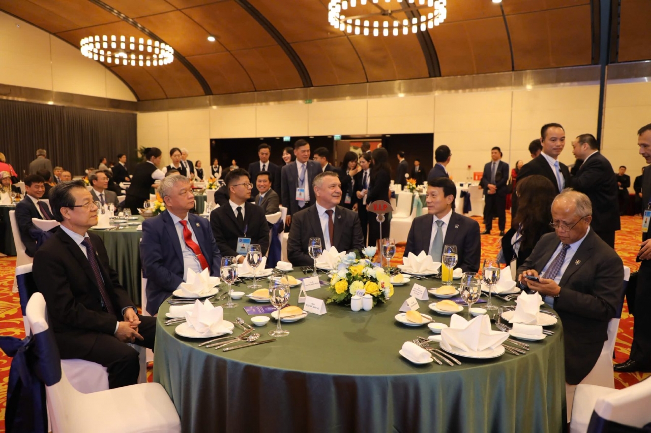 | Trưa cùng ngày, Ủy viên Bộ Chính trị, Bộ trưởng Bộ Công an Lương Tam Quang chủ trì chiêu đãi các trưởng đoàn. |