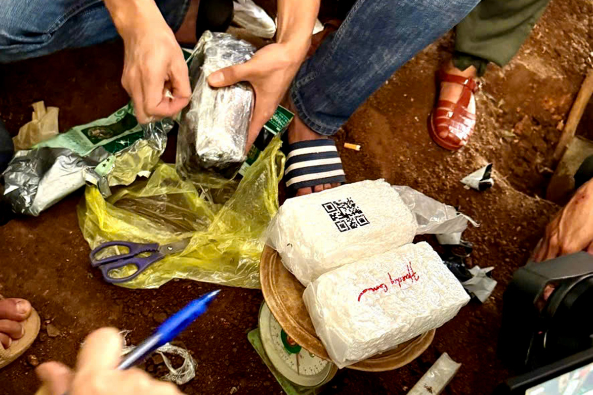 Huy động 4 chó nghiệp vụ và 2 máy xúc cày xới khu đất 2.000 m2 của nghi phạm, công an tìm thấy lượng lớn ma túy được chôn sâu và thu giữ 2 khẩu súng