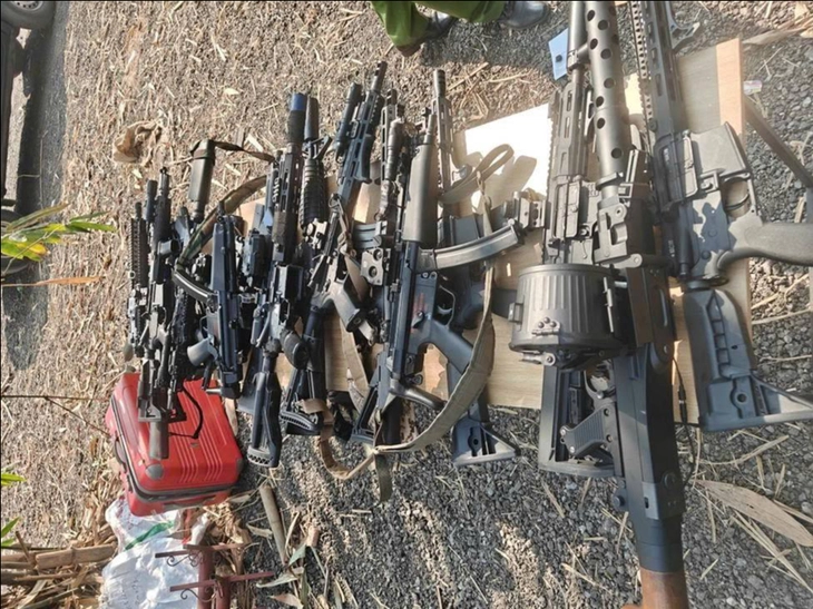 Tang vật thu giữ tại hiện trường gồm 42 khẩu súng bắn đạn nhựa các loại, hơn 5kg đạn nhựa và nhiều trang bị hỗ trợ khác như đồ bảo hộ, phụ kiện gắn kèm.