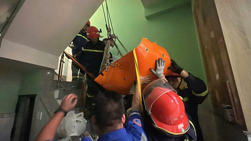 Theo đó, vào sáng ngày 16/11, Đội Chữa cháy và CNCH Khu vực 10 (thuộc Phòng Cảnh sát PCCC&CNCH Công an TPHCM) nhận tin báo từ Trung tâm Cấp cứu 115 về trường hợp anh Vũ X.C. (SN 1987), nặng khoảng 150 kg, bị liệt nửa người phải và cần hỗ trợ khẩn cấp để đưa xuống tầng trệt chuyển viện.