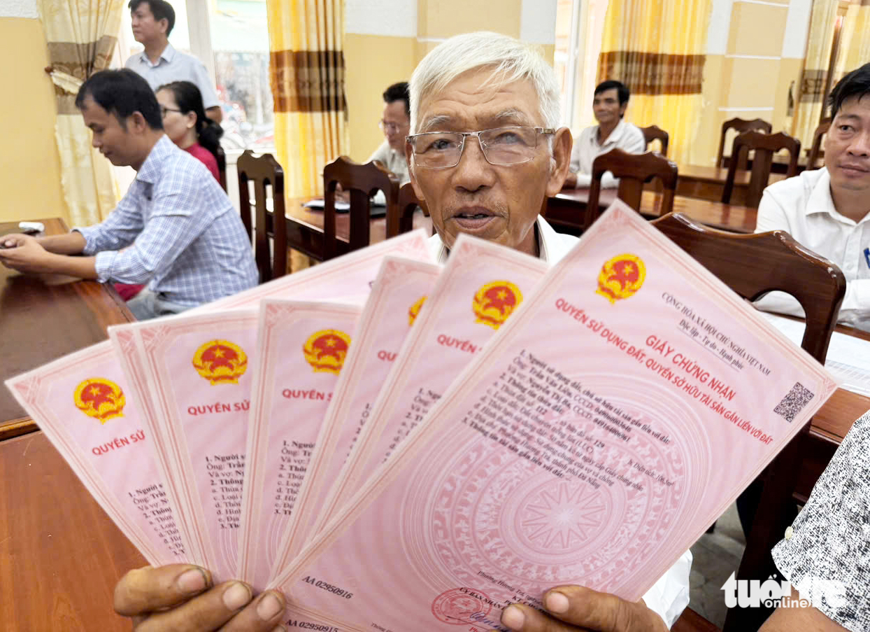 Ông cho biết thời gian trước ông làm thủ tục để được cấp giấy chứng nhận nhưng chưa được, đến nay khi thực hiện chính quyền 2 cấp, thủ tục được giải quyết, khi cầm 7 giấy chứng nhận trong tay ông vui lắm.