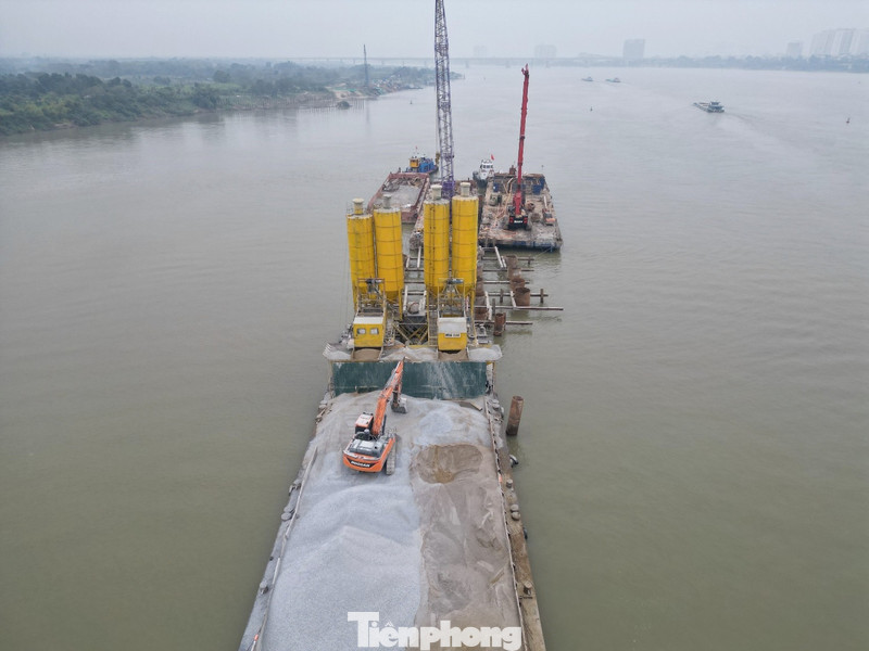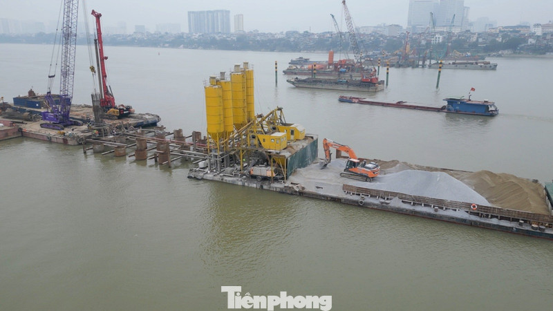 Trao đổi với PV Tiền Phong tại hiện trường dự án vừa qua, ông Nguyễn Duy Nghị - Ban Quản lý dự án cầu Trần Hưng Đạo cho biết, dự án có tổng cộng 7 trụ vượt sông và tính đến ngày 4/2/2026 các nhà thầu đang thi công 6/7 trụ, riêng trụ phía giáp bờ phía phường Hoàn Kiếm chưa thể thi công do vướng mặt bằng.