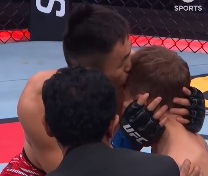 Sau khi trọng tài dừng trận, Aori Qileng vui sướng trong giây lát. Sau khi bình tĩnh lại, anh thì thầm vài lời với Cody Gibson, người đang quỳ trên sàn, rồi hôn trán đối thủ.