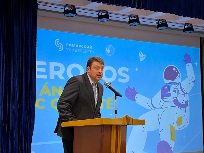 Tiếp nối chương trình, ông Goryainov Sergey Borisovich, Giám đốc dự án giáo dục quốc tế Aerokos, Trưởng phòng Đào tạo trường Đại học Samara mang tên Viện sĩ S.P. Korolev, chia sẻ dự án nằm trong khuôn khổ Tuần lễ Vũ trụ của Liên bang Nga, với mong muốn mang lại những cơ hội nghề nghiệp thú vị trong lĩnh vực khoa học kỹ thuật và hàng không.