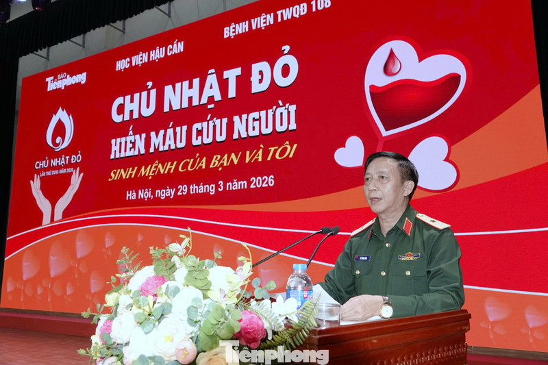 Phát biểu tại chương trình, Thiếu tướng Lê Thành Long - Phó Chính ủy Học viện Hậu cần, cho biết những năm qua, ngày hội Chủ Nhật Đỏ tại Học viện luôn nhận được sự quan tâm lãnh đạo, chỉ đạo sâu sát của Đảng ủy, Ban Giám đốc; sự phối hợp hiệu quả của Bệnh viện Trung ương Quân đội 108 và báo Tiền Phong.