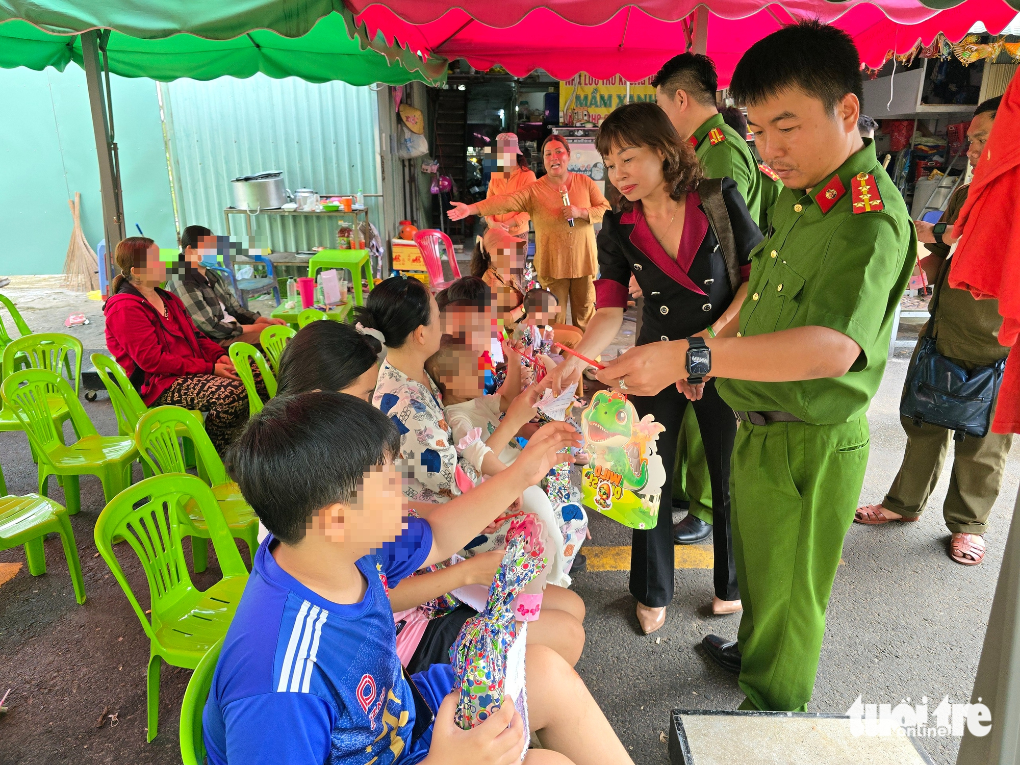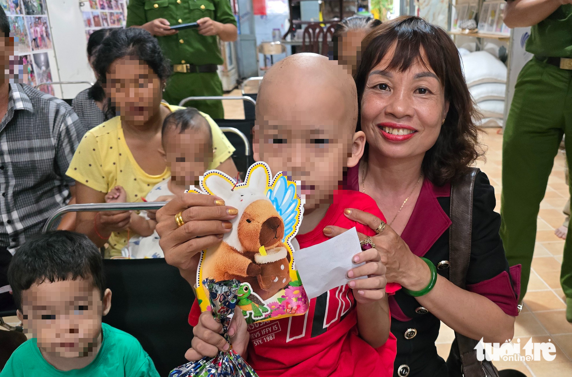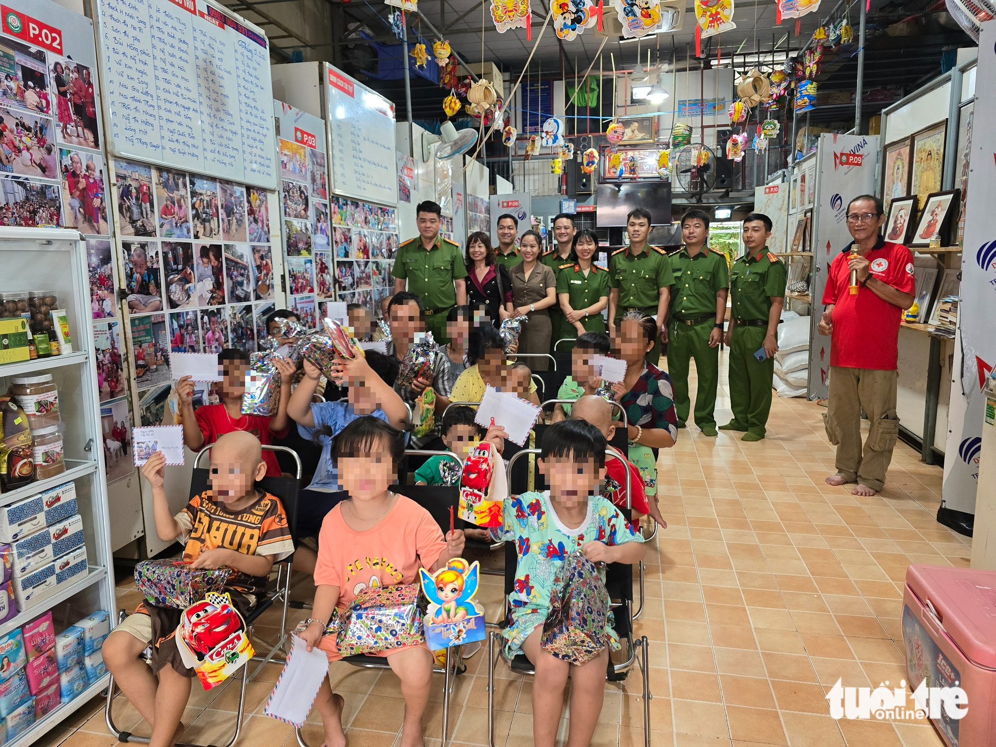 Chiều 3-10, Công an phường Tăng Nhơn Phú (TP.HCM) cùng nhà hảo tâm tổ chức phát hàng trăm phần quà Trung thu cho trẻ em đang điều trị ung thư ngoại trú ở các nhà trọ 0 đồng, mái ấm tình thương quanh Bệnh viện Ung bướu cơ sở 2.