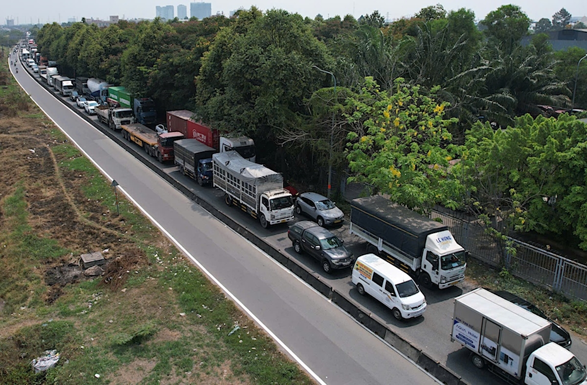 Đây là tuyến chính kết nối cảng Cát Lái với cụm cảng khu nam TP HCM có lượng xe tải, container ra vào rất lớn. CSGT đã đến phân luồng, điều tiết để giảm ùn ứ.