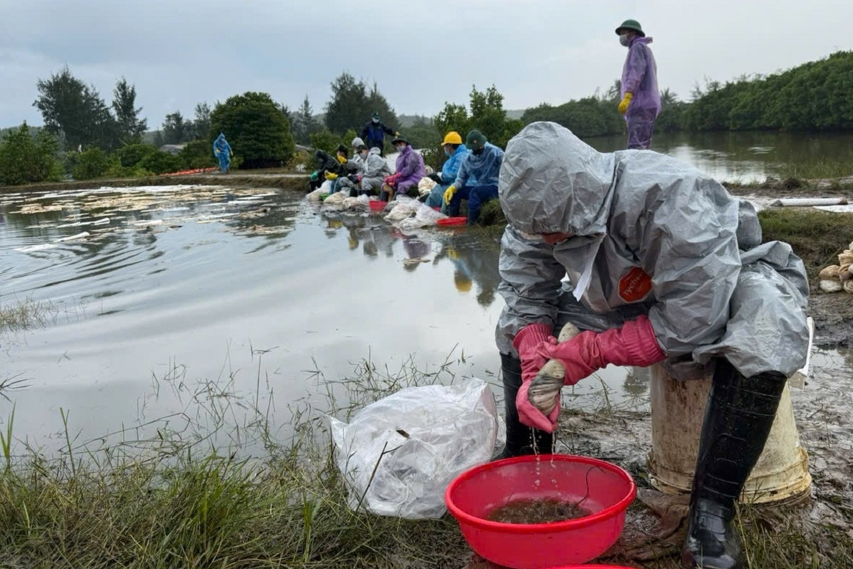 Do mưa kéo dài trước đó khiến đất no nước, váng dầu lan rộng, cộng với thủy triều và gió, dầu tiếp tục loang. Ba người dân bị dị ứng mùi dầu đã được đưa đến cơ sở y tế chăm sóc.