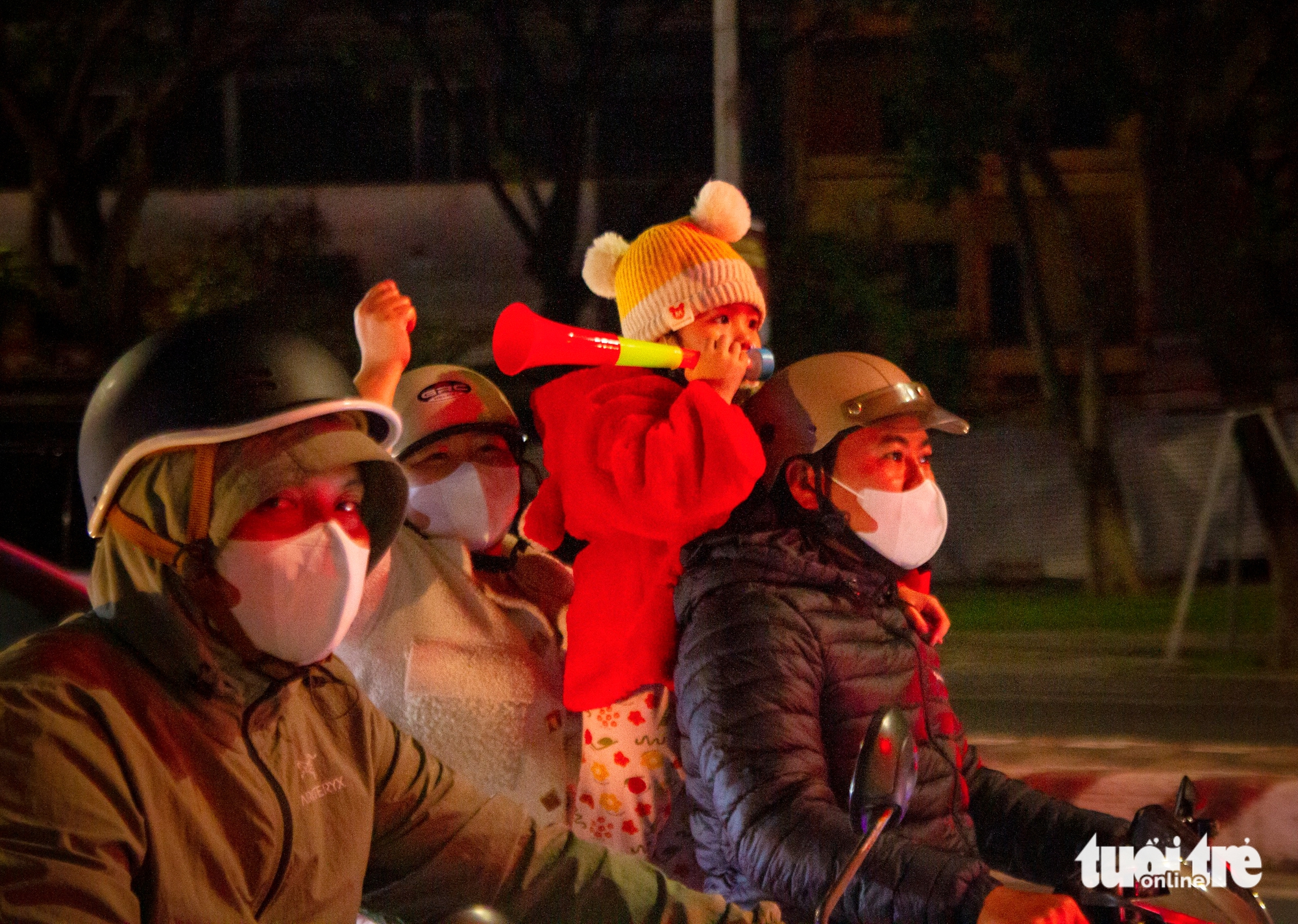 Hòa chung niềm vui chiến thắng, nhiều người dân mang theo cờ Tổ quốc, băng rôn, kèn cổ vũ. Đáng chú ý, không ít bạn trẻ còn mang theo nồi niêu, xoong chảo gõ vang tạo nhịp, góp phần làm cho không khí ăn mừng thêm náo nhiệt.